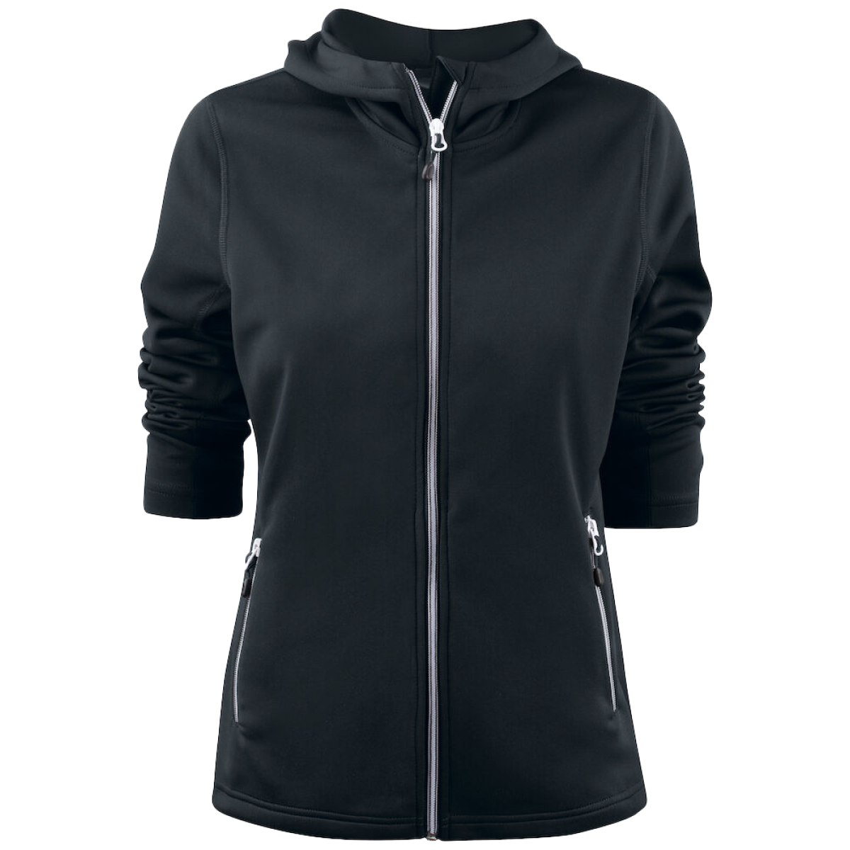 Sweatshirt met lange ritssluiting en capuchon in ringgesponnen stretchmateriaal. Contrasterende ritssluitingen, decoratieve flatlock naden en zijzakken met ritssluiting.